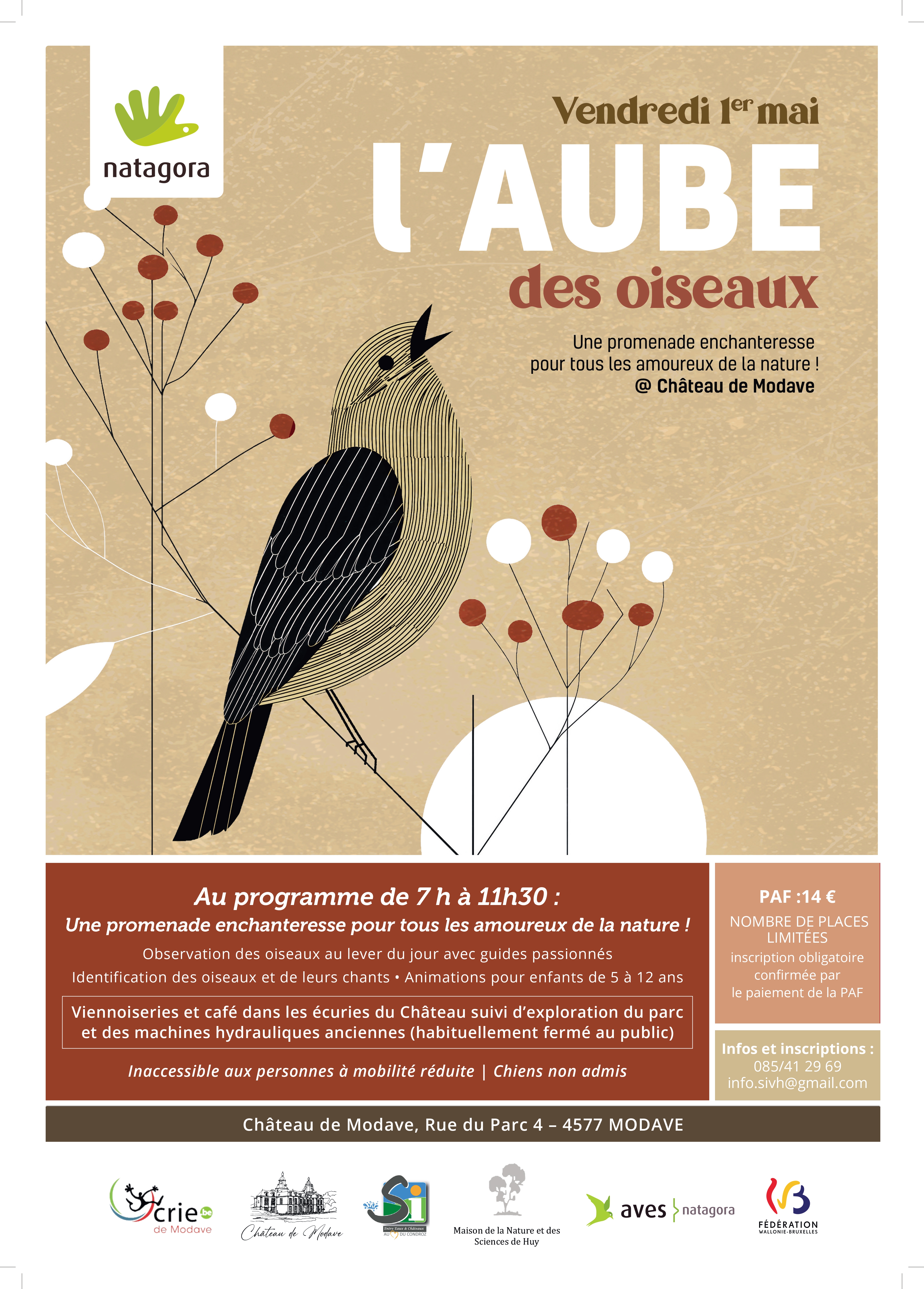 Une collaboration de Natagora, du CRIE de Modave, du Château de Modave, du Syndicat d’Initiative Eaux & Châteaux et de la Maison de la Nature & des Sciences de Huy