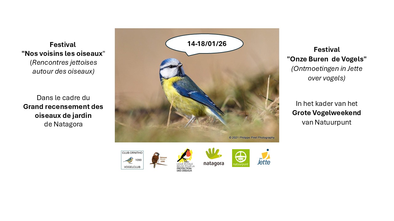 En 2026, ils vous proposent carrément un festival, en partenariat avec le Club ornitho de Jette, le groupe Moineaux de Jette, Natagora (Aves, Réseau Nature et Nature pour tous), Natuurpunt et la LRBPO (Protection des Oiseaux) et avec le soutien de l’administration communale (les bibliothèques, service Développement durable, Plan Air Climat).
