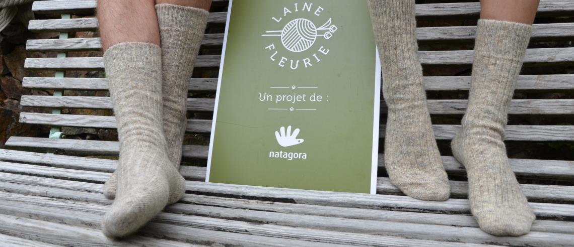 Le projet Laine fleurie de Natagora a pour but de valoriser les toisons des moutons qui entretiennent, par pâturage, la biodiversité exceptionnelle de multiples réserves naturelles de Belgique. Chaque année, les moutons sont tondus pour leur bien-être ; nous trions la laine et en assurons la transformation locale en de multiples produits : vestes, pulls, couvertures, chaussons, zafus, bananes… et désormais, chaussettes.
